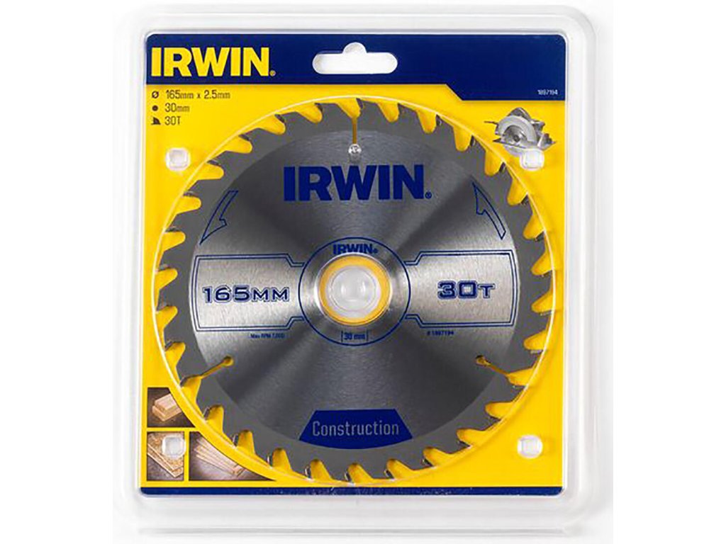 Kotouč pilový SK 165 x 2,5 x 30 / 20 / 16, z30 IRWIN Průměr: 165 mm Průměr upínacího otvoru: 30 / 20 / 16 mm Šířka řezu: 2,5 mm Počet zubů: 30 Uspořádání zubů: ATB střídavý výbrus zkosení zubů Použití: dřevo, dřevotříska, překližka apod. Tenký řez se střídavým výbrusem EVO umožňuje řezání vysokou rychlostí. Otvory pro odvod tepla a dilatační otvory omezují kumulaci tepla a kroucení. Ozubení z tvrdokovu v průmyslové kvalitě zůstává déle ostré a také déle vydrží. Korozivzdorná povrchová úprava zajišťuje dlouhodobější a lepší výkon. ATB - Střídavý výbrus zkosení zubů - pravostranné a levostranné zuby se střídají a na obou stranách vytvářejí ostří podobné noži, které zaručují čistý řez.Doplňkové parametry