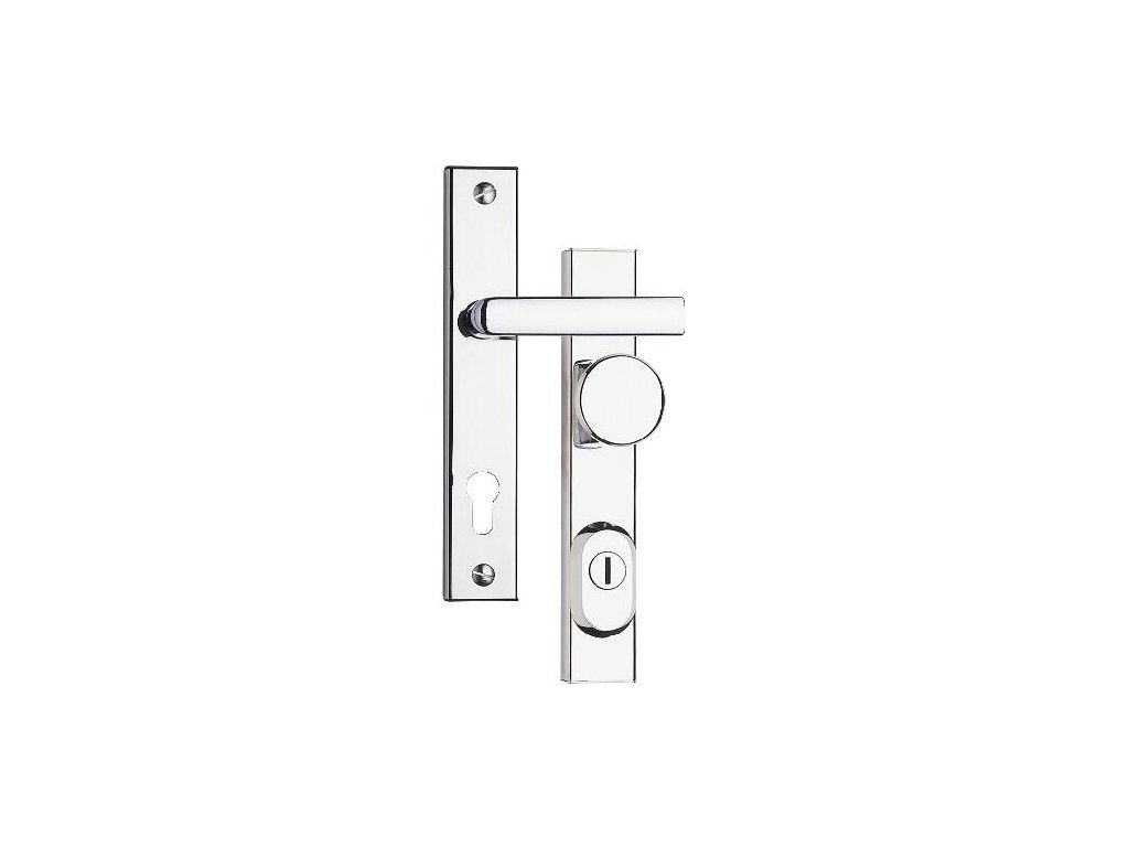 Kování bezpečnostní R1/90 mm bez vložky Cr-nerez. rozměry: R1/90 mm materiál: Cr-nerez Bezpečnostní kování R1/90 je dveřní kování bezpečnostní třídy 3, které je vhodné pro použití k interiérovým i vstupním dveřím. Kování je vybaveno otvorem pro cylindrickou vložku a je chráněno proti odvrtání bezpečnostním krytem vložky. Rozteč mezi klikou a zámkem je 90 mm. Nerezový povrch zaručuje dobrou výdrž.Doplňkové parametry
