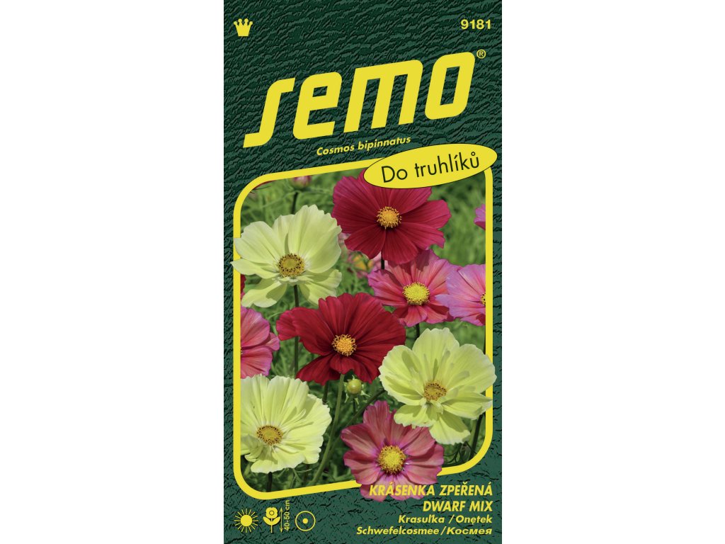 DWARF MIX (kód 9181) - Krásenka zpeřená je typickou letničkou venkovských zahrádek, která kvete po celé léto až do prvních mrazíků. Je především součástí letničkových směsí, kde vytváří jemně barevnou škálu středně velkých květů. Rostlina svým habitem nevšedně doplňuje květinové kompozice ve váze a pro její poměrně dlouhou trvanlivost ji můžeme doporučit i k řezu.