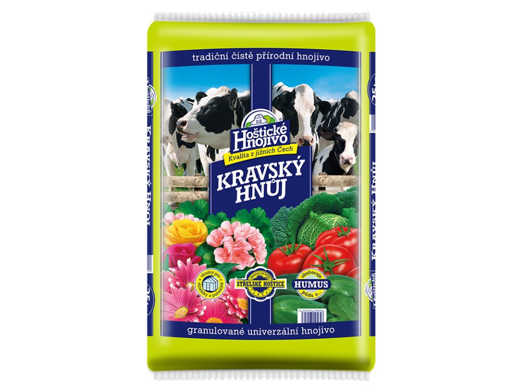 Hoštický kravský hnůj je granulovaný, přičemž granule při styku s vodou bobtnají a tak dochází k postupnému uvolňování živin.