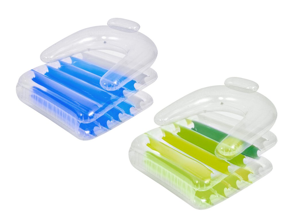 Křeslo nafukovací 180 x 79 x 48 cm, mix barev. rozměry: 180 x 79 x 48 cm materiál: vinyl mix barev: transaparentní / modrá, zelená nosnost: 100 kg Nafukovací lehátko s opěrkou zad a rukou je určené k letním hrám nebo odpočinku na vodní hladině. Doporučený věk od 14 let.Doplňkové parametry