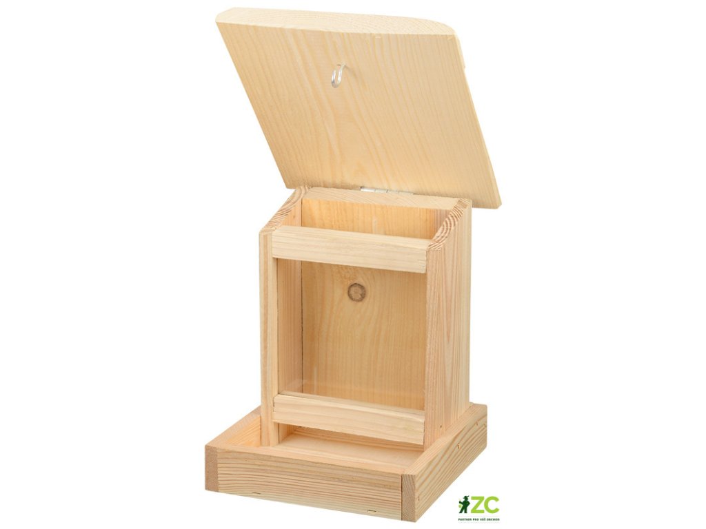 Popis a použití:Dřevěné krmítko určené pro přikrmování venkovního ptactva převážně v zimních měsících. Bylo zjištěno, že jedna sýkorka mimo zimní období sezobe asi 2kg různých škůdců. Přes zimu pak spotřebuje cca 1 kg slunečnicových semínek. Takže starejte se v zimě o ""své"" sýkorky, ony vám to oplatí.
