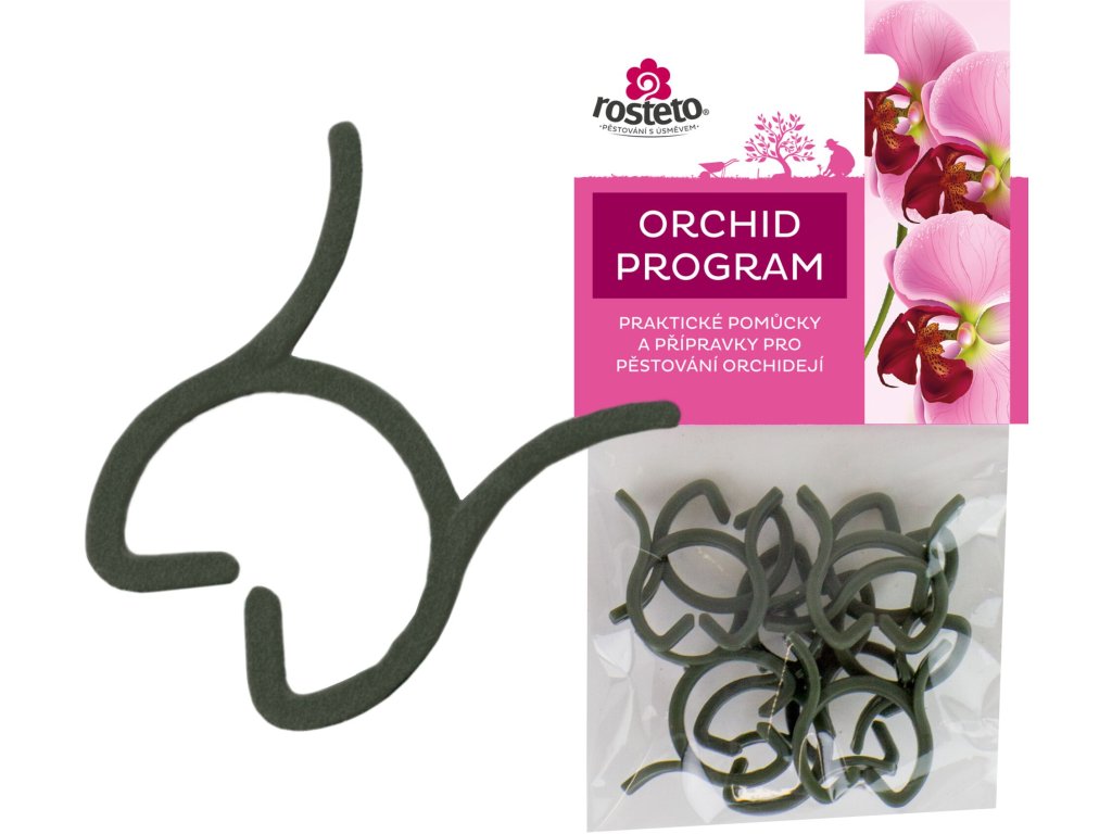 Dekorativní klipsy slouží k uchycení květního stvolu rostliny k opěrné tyčce. Jsou balené po 10 ks v igelitovém sáčku s EURO závěsem - pro možnost zavěšení na stojan.