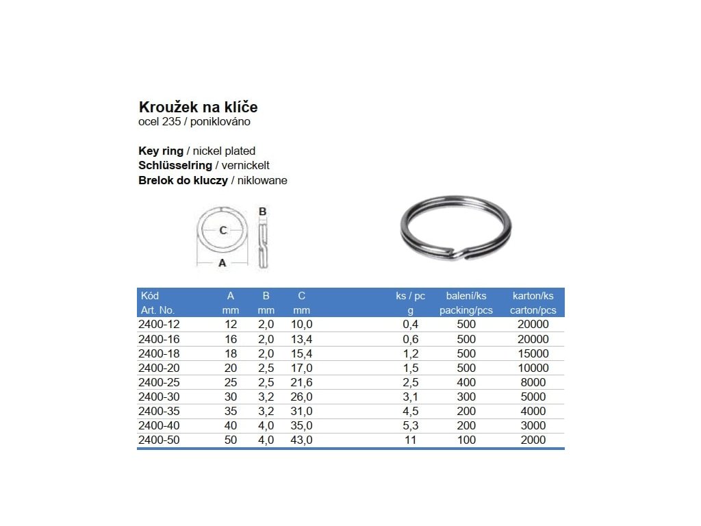 Velikost: | 40x2,3mm, 35x2,0mm, 30x2,0mm, 25x1,8mm, 20x1,5mm, 50x2,8mm, 18x1,5mm, 16x1,6mm, 12x1,2mm |