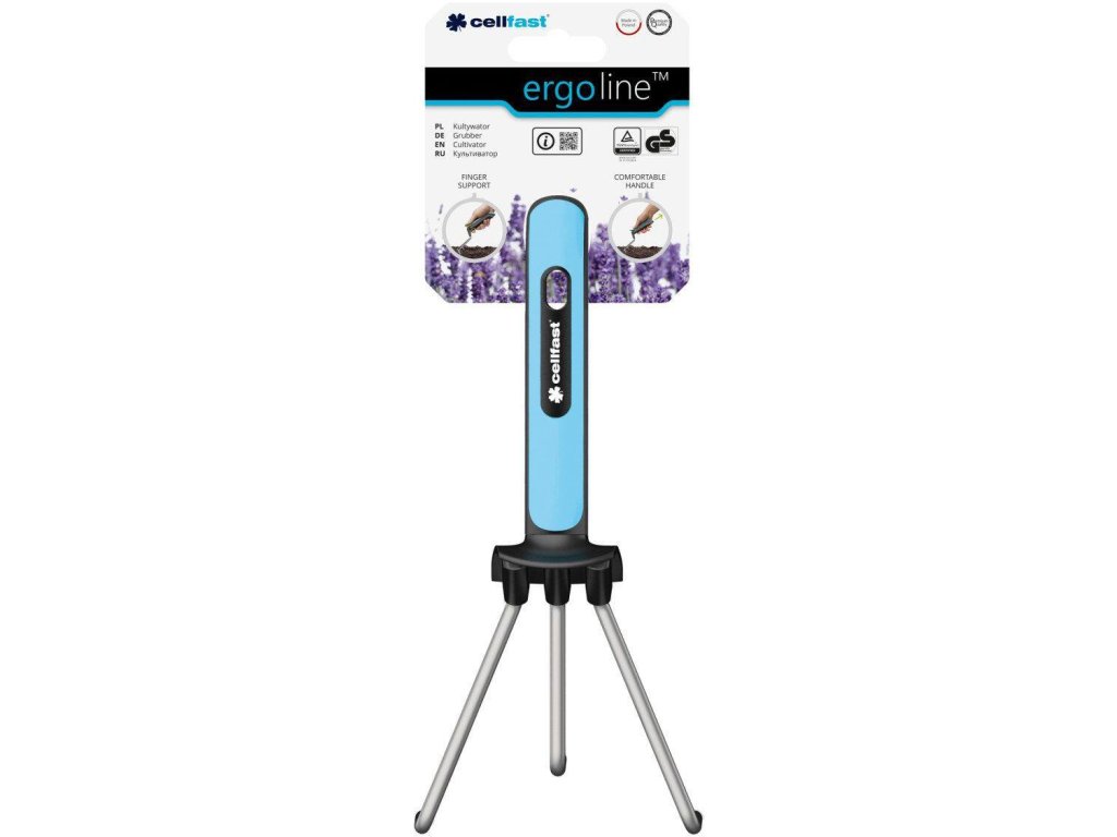 Kultivátor ERGO ™ CELLFAST. - ruční nářadí pro provzdušňování a kypření půdy - pomáhá odstraňovat mělce zakořeněné plevele a připravovat záhony pro setí semen - systém SAFETOUCH ™ poskytuje bezpečné uchopení a pohodlí při používání - ergonomicky tvarovaná rukojeť s opěrkou palce poskytuje výjimečné pohodlí při práci - zuby vyrobené z vysoce kvalitní nerezové oceli mají hladké hrany, které jsou bezpečné pro rostliny - závěsný otvor pro snadné skladování - bezpečnostní certifikát TÜV GS Ruční kultivátor s ergonomicky tvarovanou rukojetí a opěrkou place pro snazší práci, pomáhá k odstranění plevele či k přípravě zeminy pro setí semen.Doplňkové parametry