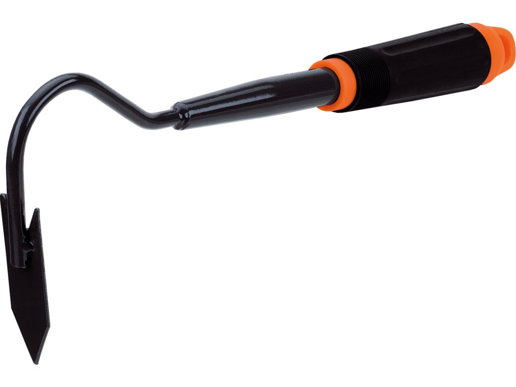 Malý kultivátor z oceli na provzdušnění půdy. Masivní plastová rukojeť se závitem, který umožňuje našroubování dlouhé kovové násady. Násadu je možné dokoupit a využít pro celou řadu ručního nářadí Stocker (772018).