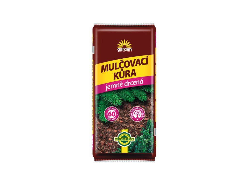 Mulčovací kůra jemně drcená dotváří celkový vzhled zahrady a má neocenitelné vlastnosti při pěstování okrasných rostlin. Kůra je vždy z více jak 90 % smrková s možnou menší příměsí borovicové kůry.