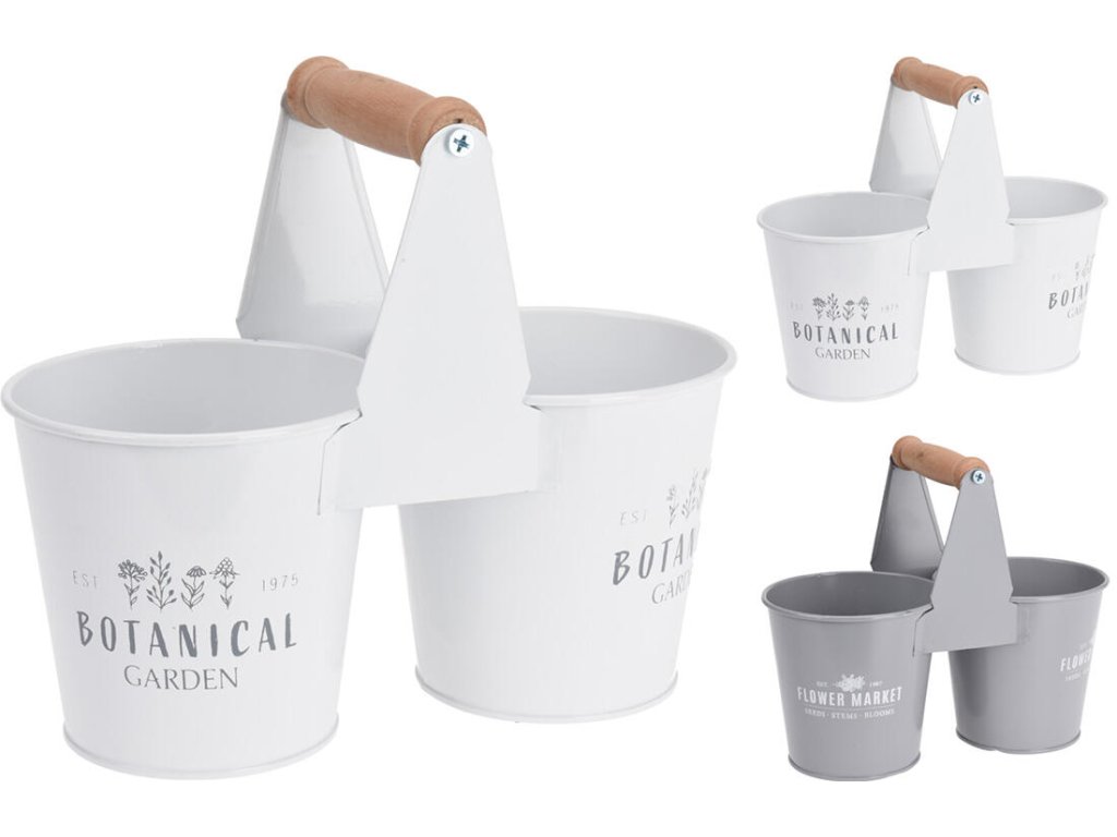 Dekorační květináč - double 23,5 x 11,5 x 10,8 cm, kov, mix barev. celkové rozměry (š x h x v): 23,5 x 11,5 x 10,8 cm hmotnost: 260 g materiál: kov mix barev a dekorů: - bílá / dekor botanická zahrada - šedá / dekor květinový trh Double květináč s rukojetí. Dekorační plechový květináč je vkusným doplňkem, který ozdobí Váš byt, balkon, terasu či zahradu.Doplňkové parametry