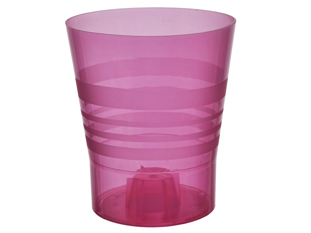Plastový květináč pro orchideje. Zvýšené dno zajišťuje, aby rostlina netrpěla přelitím a přebytkem vody, což je nejčastější příčinou jejich uvadnutí. Lze použít také jako obal, odtokové otvory jsou pouze naznačeny.