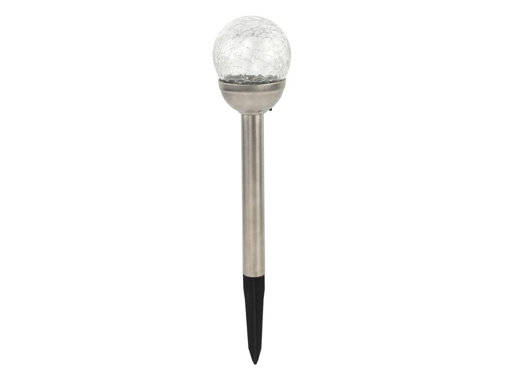 Lampa solární KOULE 7,8 cm, v. 38 cm, 1LED, čirá, nerez / sklo / PH. průměr: 7,8 cm výška: 38 cm 1 LED čirá - barevné světlo, které mění plynule barvy - přepínač ON / OFF - 1 x 1.2 V, AA, 100mAh, NI-MH - plastový zápich - krytí IP44 Solární lampa KOULE je perfektním dekorativním osvětlením pro zahrady, terasy a domovní cesty. Lampa zachycuje sluneční energii, kterou poté ukládá, takže vám nevznikají žádné náklady na elektřinu, navíc je takové osvětlení šetrné k životnímu prostředí. Vzhledem k tomu, že produkt obsahuje plastové části, skladujte ho po zimní sezónu v interiéru - garáž, sklep apod. aby nedocházelo ke křehnutí plastů.Doplňkové parametry