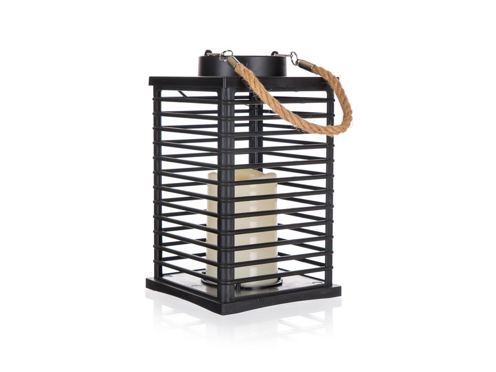 Lampa solární STRIPES 14 x 14 x 24 cm. rozměry: 14 x 14 x 24 cm Solární lucerna je úsporným a pohodlným řešením dekoračního osvětletní na zahradě. Lampa je vybavena solárním panelem, který přes den na slunci nabije zabudovaný aku článek dodávající lucerně energii pro svícení po setmění. Lampa bude sloužit jako doplněk k osvětlení vaší zahrady. Speciální žlutě zabarvané LED diody s problikávajícím světlem, imitují světlo svíčky.Doplňkové parametry