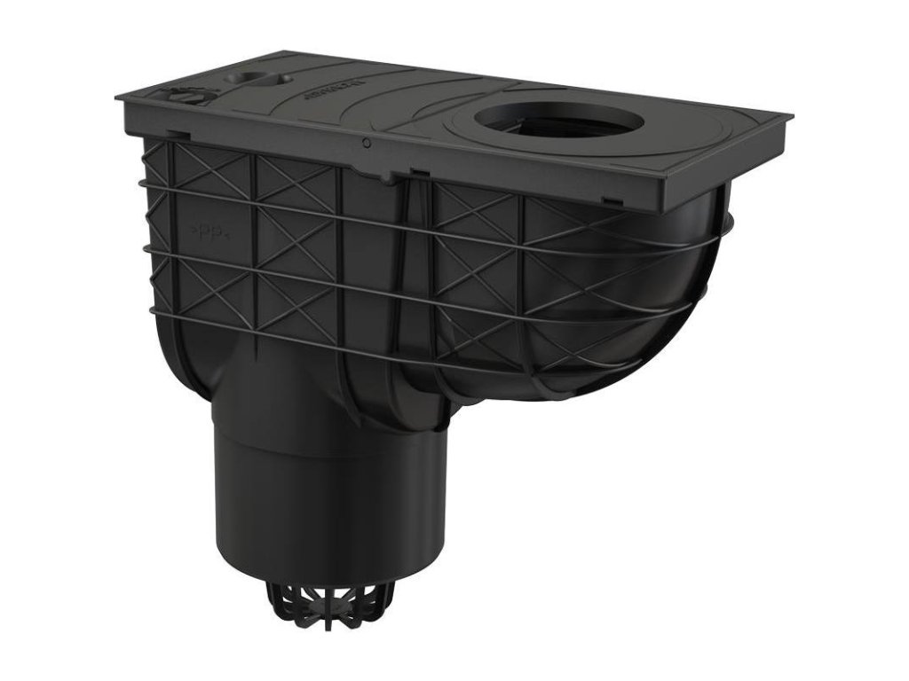 - obsahuje těsnící kroužky pro připojení dešťových svodů různých průměrů (80, 90, 110, 125 mm), víko okapového svodu (lze nahradit mřížkou