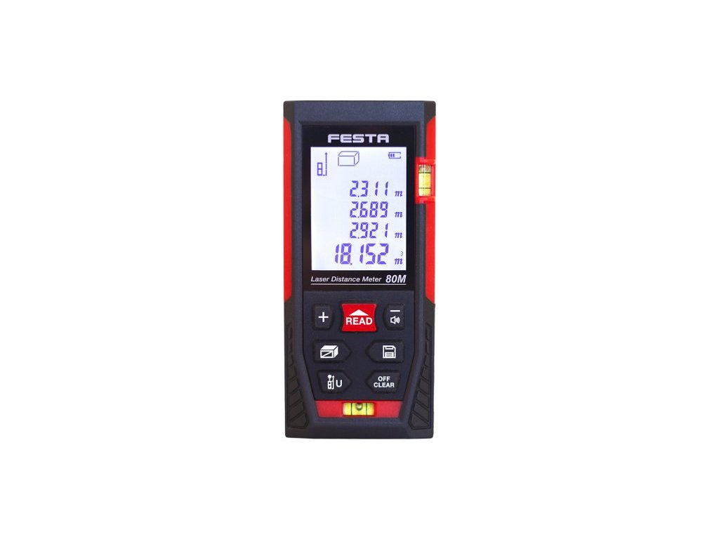 rozsah měření 0,05 - 80 m přesnost měření ± 2 mm / 10m, ± 5 mm / 50m kontinuální měření, měření plochy, měření objemu, výpočet délky třetí strany dle Pythagorovy věty, sčítání/odčítání, max./ min. měření maximální úložiště na 100 hodnot, čtyřřádkový displej LCD FSTNS s podsvícením vlnová délka laseru 630 - 670 nm, pracovní teplota 0 - 40°C rozměry 112 x 50 x 25 mm, hmotnost 90 g dodáváno s: přepravní pouzdro, 2 x alkalické baterie AAADoplňkové parametry