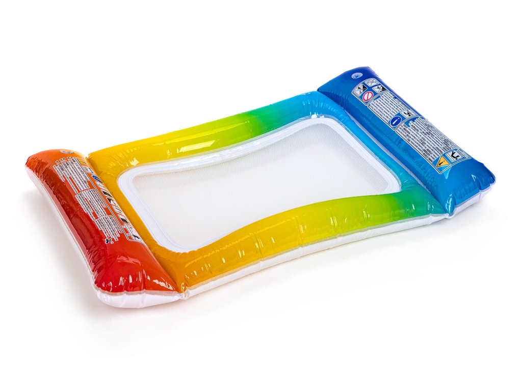 Lehátko nafukovací 117 x 76 cm, se sítí. rozměry: 117 x 76 x 15 cm materiál: vinyl barva: duhová nosnost: 80 kg věk: od 14 let Nafukovací lehátko se sítí je určené k letnímu odpočinku na vodní hladině.Doplňkové parametry