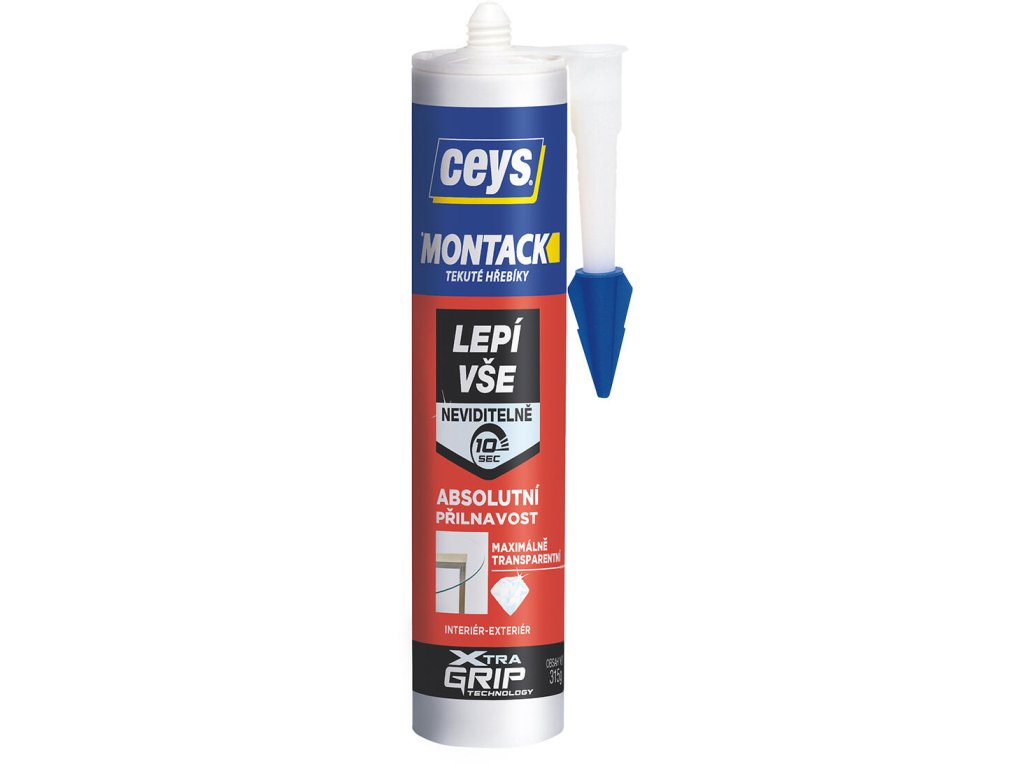 Montážní lepidlo 300 ml / 315 g MONTACKCEYS TRA. MONTACK TRANSPARENT je montážní lepidlo určené pro upevňování jakéhokoliv materiálu na různé podklady. Je speciálně určeno pro aplikace, které vyžadují transparentní zakončení. Zajišťuje vysokou počáteční přilnavost a odolnost po vytvrdnutí spoje. Jeho vyplňovací schopnosti umožňují aplikace i na nerovné plochy. Odolává vlhkosti. Lepení je rychlé a trvalé. Produkt se doporučuje aplikovat při teplotě vyšší než +10 °C. Balení vhodné pro aplikaci pistolí. NÁVOD NA POUŽITÍ Očistit a osušit lepené plochy. Odříznout konec uzávěru kartuše a našroubovat aplikační špičku seříznutou na potřebný profil. Vložit kartuši do pistole a nanést lepidlo v bodech na jednu z lepených ploch. Spojit lehkým tlakem obě plochy v požadované poloze, aby došlo k rovnoměrnému nanesení lepidla. Rozpojit obě plochy a nechat lepidlo odvětrat cca 5-10 minut. Následně spojit obě plochy silným tlakem po dobu několika sekund (popř. pevným poklepáním pomocí gumové palice). Přebytek lepidla odstranit pomocí univerzálního rozpouštědla. Maximální odolnosti je dosaženo po 24 hodin po aplikaci. VHODNÉ MATERIÁLY: sklo, křišťál, zrcadla, plexisklo, polystyren, metakrylát, polykarbonát, dřevo, kov, plasty, kámen, cihla, beton, sádra, obklady ODOLNOST ZÁTĚŽI: 40 kg/cm2 TEPLOTNÍ ODOLNOST: -15 až +80 °C objem 300 ml / hmotnost 315 gDoplňkové parametry