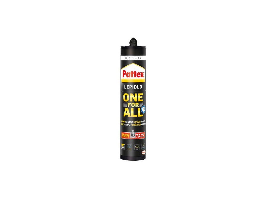 Lepidlo montážní 440g PATTEX ONE FOR ALL. hmotnost: 440 g Extrémnmě silné montážní lepidlo na Flextec polymerové bázi s počáteční fixací až 350 kg/m².Doplňkové parametry