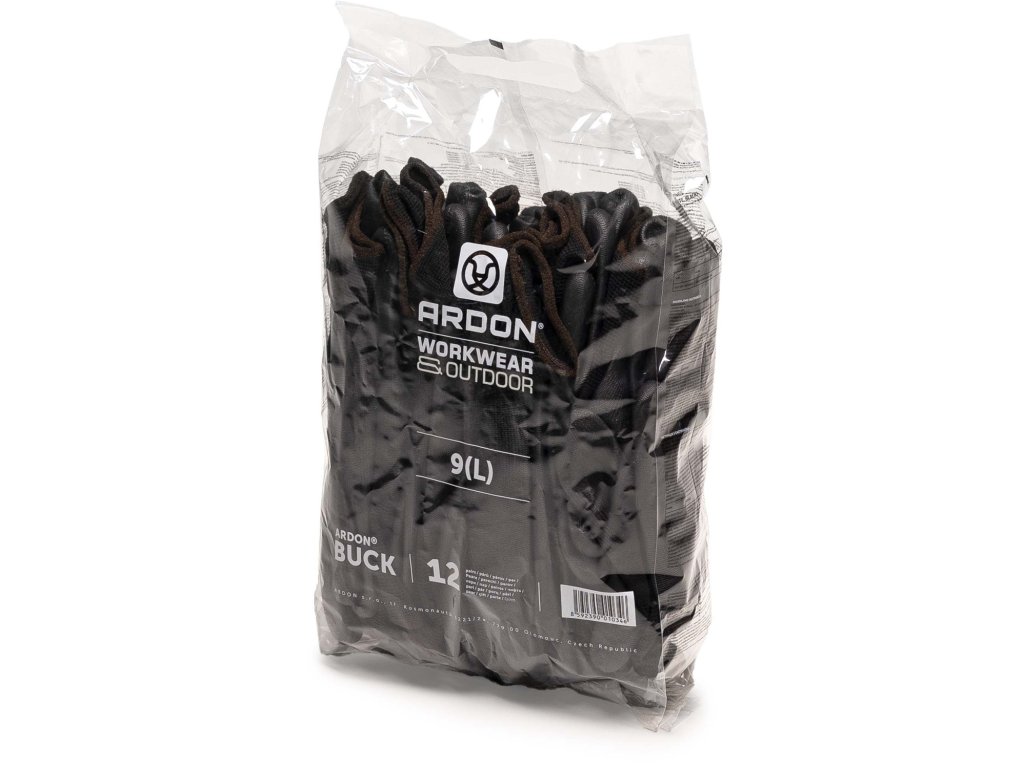 Máčené rukavice ARDON®BUCK BLACK - maloobchodní balení 12 párů - černá