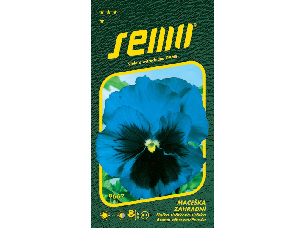 Velké modré květy s fialovým okem, výška 15cm. Oblíbená dvouletka používaná pro skupinové záhonové výsadby. Vyhovují ji slunná i mírně zastíněná stanoviště, nesnáší však sucho a úpal. Je citlivá na zaschnutí při klíčení, výsev je nutno udržovat stále vlhký.