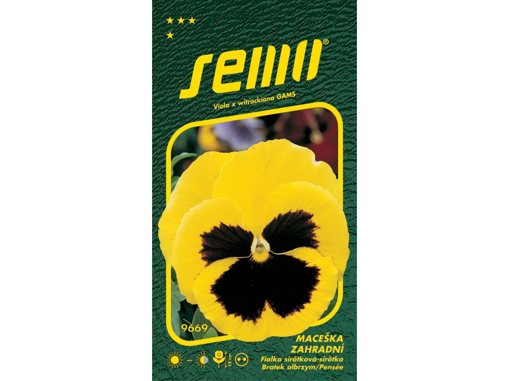 Velké žluté květy s tmavým okem, výška 15cm. Oblíbená dvouletka používaná pro skupinové záhonové výsadby. Vyhovují ji slunná i mírně zastíněná stanoviště, nesnáší však sucho a úpal. Je citlivá na zaschnutí při klíčení, výsev je nutno udržovat stále vlhký.