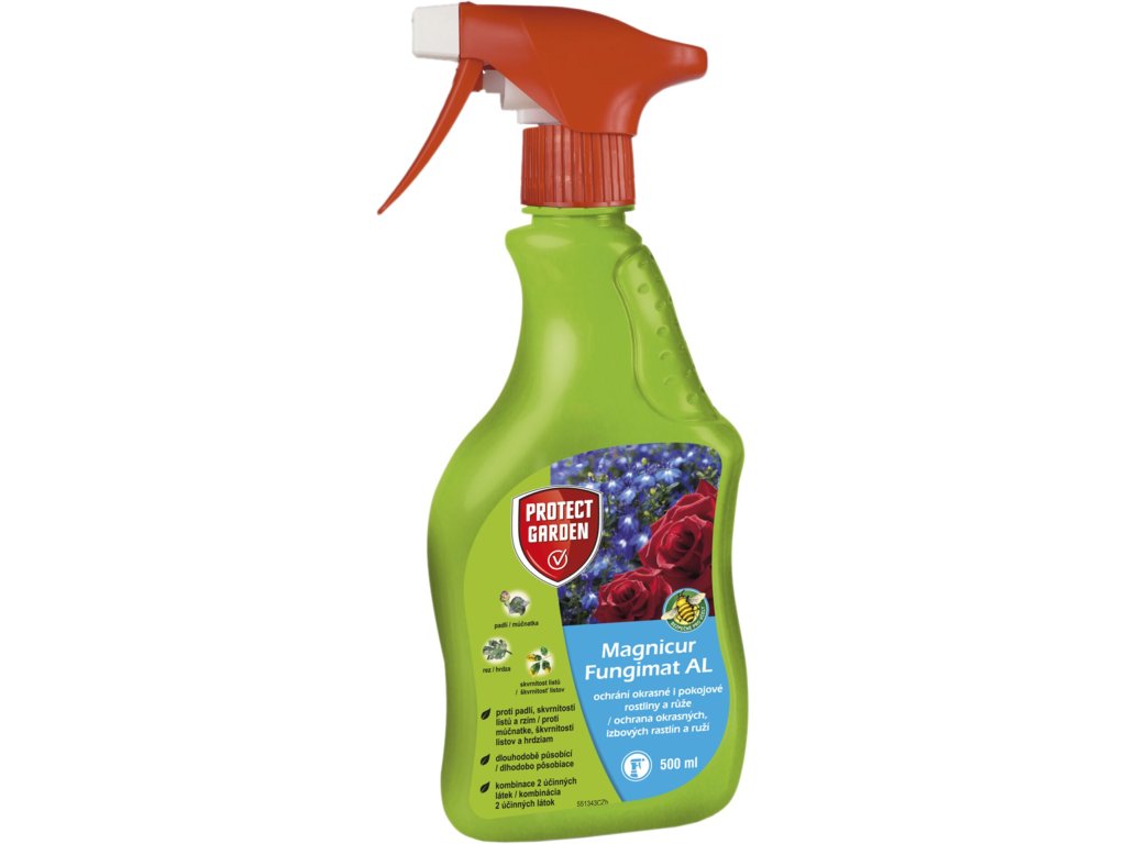 Fungicidní přípravek z řady PROTECT GARDEN k přímému použití ve formě kapaliny k aplikaci bez ředění (ready for use) určený k ochraně okrasných rostlin proti padlí, skvrnitost listů a rez, k ochraně růží - padlí růžové, černá skvrnitost růže a rez růžová. Obsahuje stabilizátory pro dlouhodobé a opakované použití doma i na zahrádce. Obsahuje dvě účinné látky, proto je ochrana zabezpečena dvěma způsoby. Choroba je potlačena přímým působením účinné látky, která penetruje do listů a následně se vytvoří na povrchu listů ochranný povlak, čímž se zabrání novému rozvoji choroby.