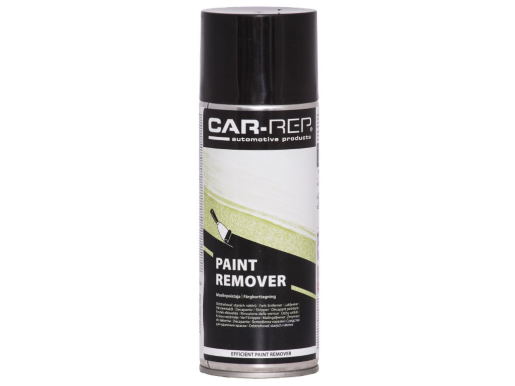 Účinný, nekapající, gelovitou prostředek k odstranění téměř všech typů nátěrů. Účinně odstraňuje i laky, lepidla a koncentráty. Snadno použitelný, široký rozsah stříkání.CAR-REP® STRIPPER PAINT REMOVER je účinný gelovitý nekapající odstraňovač barvy vhodný pro téměř všechny typy nátěrů. Účinně odstraňuje také laky, lepidla a koncentráty. Snadno použitelný, záběr postřiku asi 7-8 cm. Pokrytí kolem 1m². Návod k použití: Před použitím si pečlivě pročtěte pokyny na obalu a postupujte podle nich. Sprej by měl mít pokojovou teplotu od +5°C do +30°C. Před použitím sprej důkladně protřepejte. Nejprve otestujte kompatibilitu povrchu na malé, nejlépe neviditelné oblasti. Nastříkejte na povrch a nechte odstraňovač reagovat po dobu 5 - 15 minut. Reakční doba závisí na kvalitě a stáří barvy nebo laku. V případě potřeby použijte kovovou škrabku a/nebo postup opakujte. Znečištěný odstraňovač barvy by měl být považován za chemický odpad.