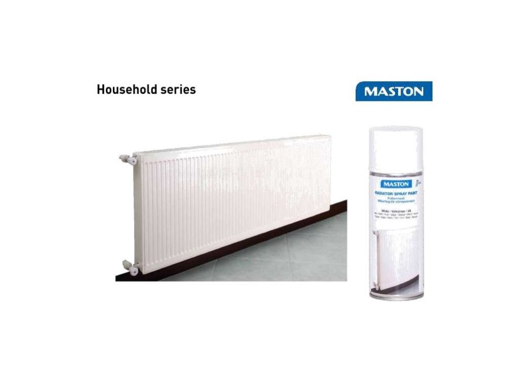 Vysoce kvalitní, rychle schnoucí akrylová barva speciálně vyvinutá pro radiátory. MASTON RADIATOR SPRAY PAINT je vysoce kvalitní, rychle schnoucí akrylová barva speciálně vyvinutá pro radiátory. Velmi dobré pokrytí. Díky svým rychle schnoucím vlastnostem je povrch suchý na dotek za 10 - 20 minut. Tepelná odolnost 120°C.Velmi dobré pokrytí. Díky svým rychle schnoucím vlastnostem je povrch suchý na dotek za 10 - 20 minut.