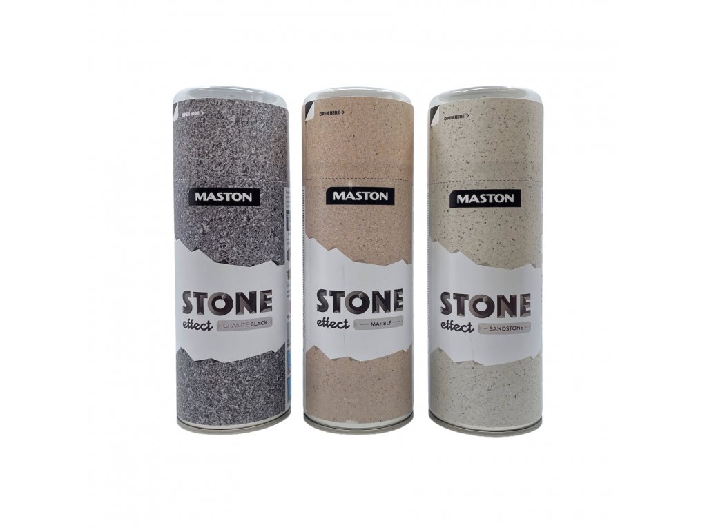 Dává jakémukoli povrchu vzhled přírodního kamene. Jedinečná receptura zabezpečí texturovanou, vícebarevnou povrchovou úpravu. Změní obyčejné předměty na předměty s krásným kamenným efektem. Použijte akrylový základní nátěr. Pouze pro použití v interiéru. Povrch má omezenou odolnost vůči opotřebení. Pro lepší ochranu povrch přelakujte akrylovým lakem od Maston.Přetírání jinými druhy nátěrů se nedoporučuje.