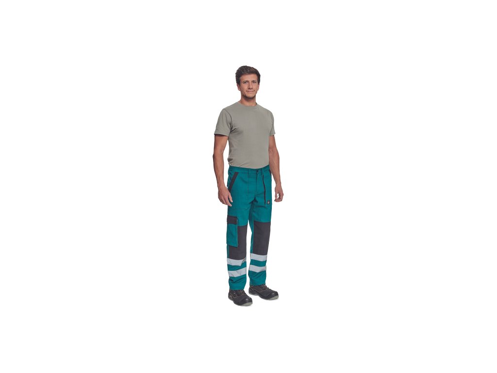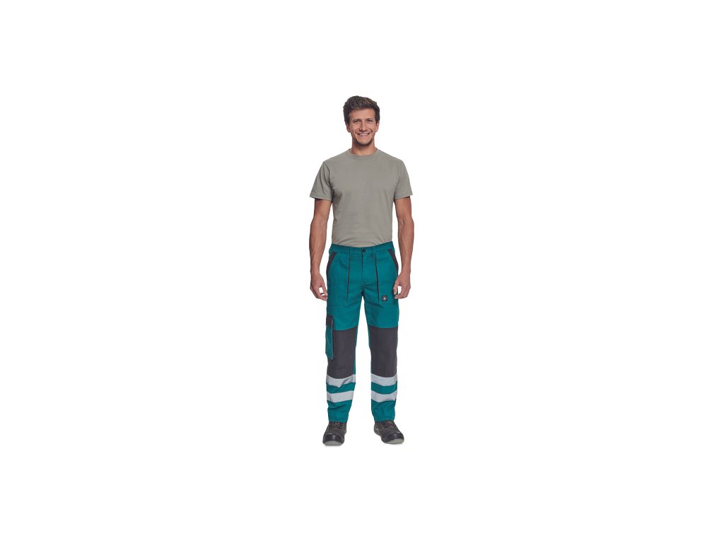 • pánské pracovní kalhoty s elastickým pasem • 2 přední kapsy • 1 stehenní kapsa • 2 zadní kapsy • reflexní pruhy na spodní části nohavic • zesílená oblast kolen • nastavitelná délka nohavicDoplňkové parametry