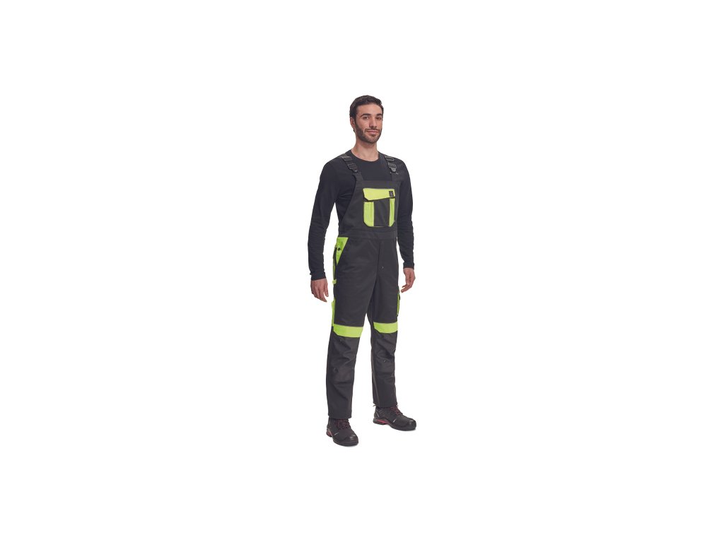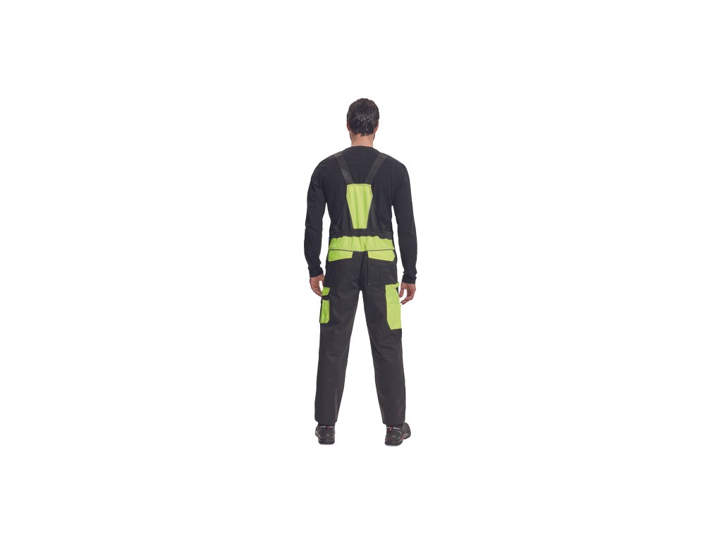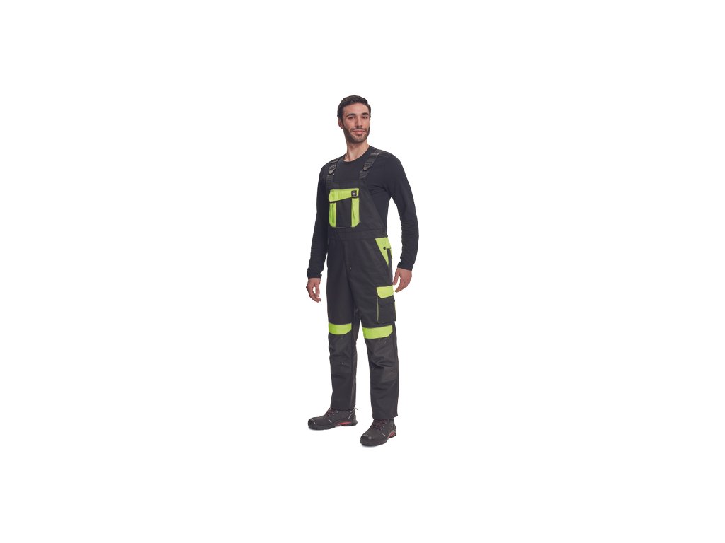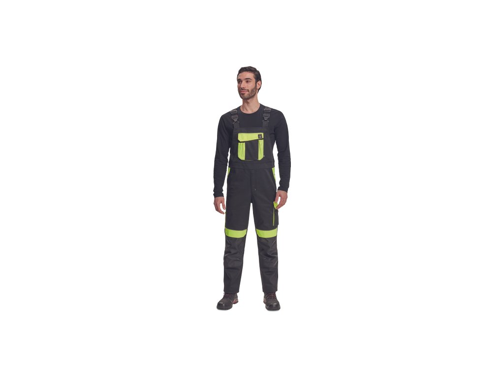 • pánské pracovní kalhoty s laclem a elastickým pasem • široké šle s plastovými sponami • 2 přední kapsy, 1 levá zdvojená stehenní kapsa • 1 velká náprsní kapsa na suchý zip, 2 zadní kapsy, 2 menší zadní kapsičky na pravém stehnu • reflexní paspulky • Oxford 600D zesílení kolen s možností horního vkládání nákoleníků • možnost prodloužení nohavicDoplňkové parametry