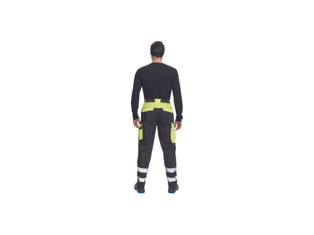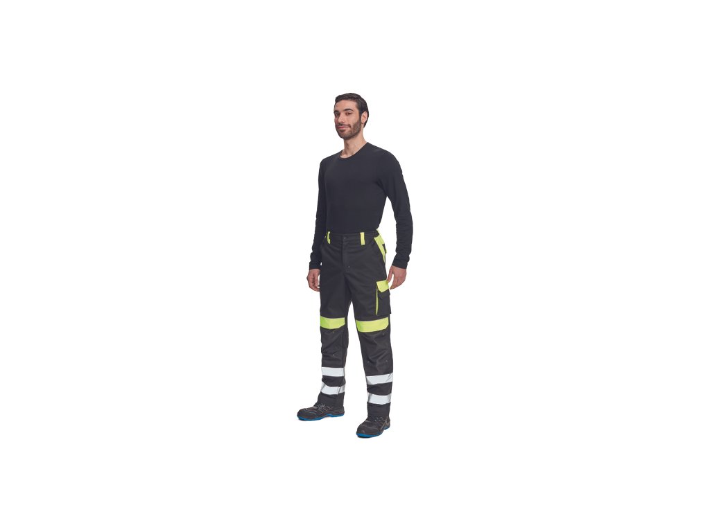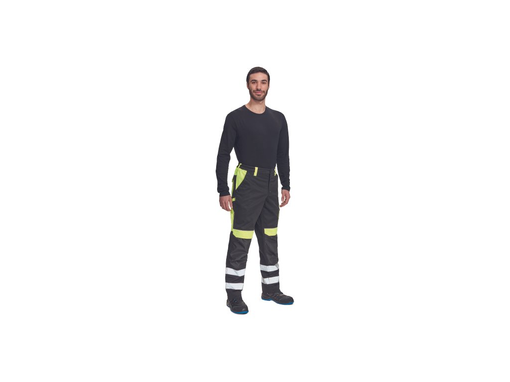 • pánské reflexní pracovní kalhoty s elastickým pasem • 2 přední kapsy • 1 levá zdvojená stehenní kapsa • 2 zadní kapsy • 2 menší zadní kapsičky na pravém stehnu • dvojice našitých 5 cm reflexních pruhů na spodní části nohavic • reflexní paspulky • Oxford 600D zesílení kolen s možností horního vkládání nákoleníků • možnost prodloužení nohavicDoplňkové parametry