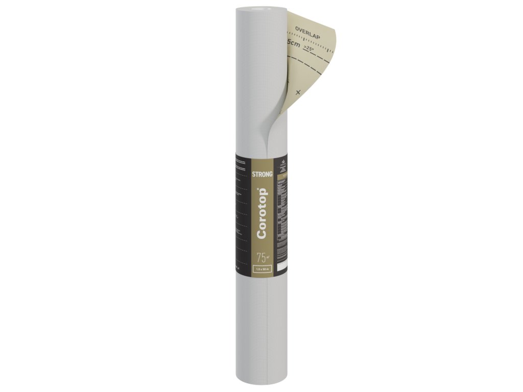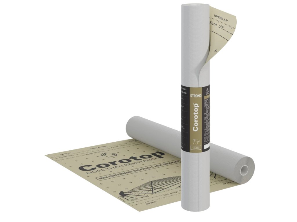 Třívrstvá paropropustná membrána s vysokou gramáží a pevnou strukturou. Nepřetrhává se i při značném zatížení a zvýšeném tření. Z tohoto důvodu je doporučována zejména pro střechy s plným bedněním. Světlá barva odráží sluneční paprsky a zajišťuje lepší izolaci. Corotop Strong je zárukou životnosti a dlouhodobé, stabilní kvality. Použití:• membrána určená pro střechy s neúplným a plným bedněním