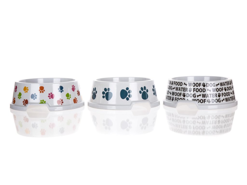 Miska pro psa 16,5 cm, PH, mix dekorů. průměr: 16,5 cm materiál: plast mix dekorů Psí miska z plastu je vhodná na krmení i vodu. Díky praktické výseči lze snadno uchopit. Konický tvar napomáhá k zamezení převrhnutí misky.Doplňkové parametry