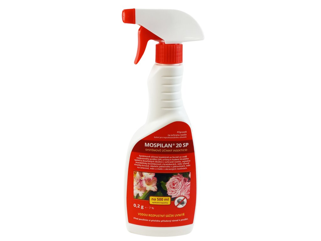 Mospilan je systémově účinný insekticid ve formě ve vodě rozpustného prášku určený k hubení širokého spektra živočišných škůdců v ochraně rostlin, zejména mšic včetně mšice bavlníkové a molic v okrasných rostlinách. Mospilan rozprašovač obsahuje sáček o obsahu 0,2 g.