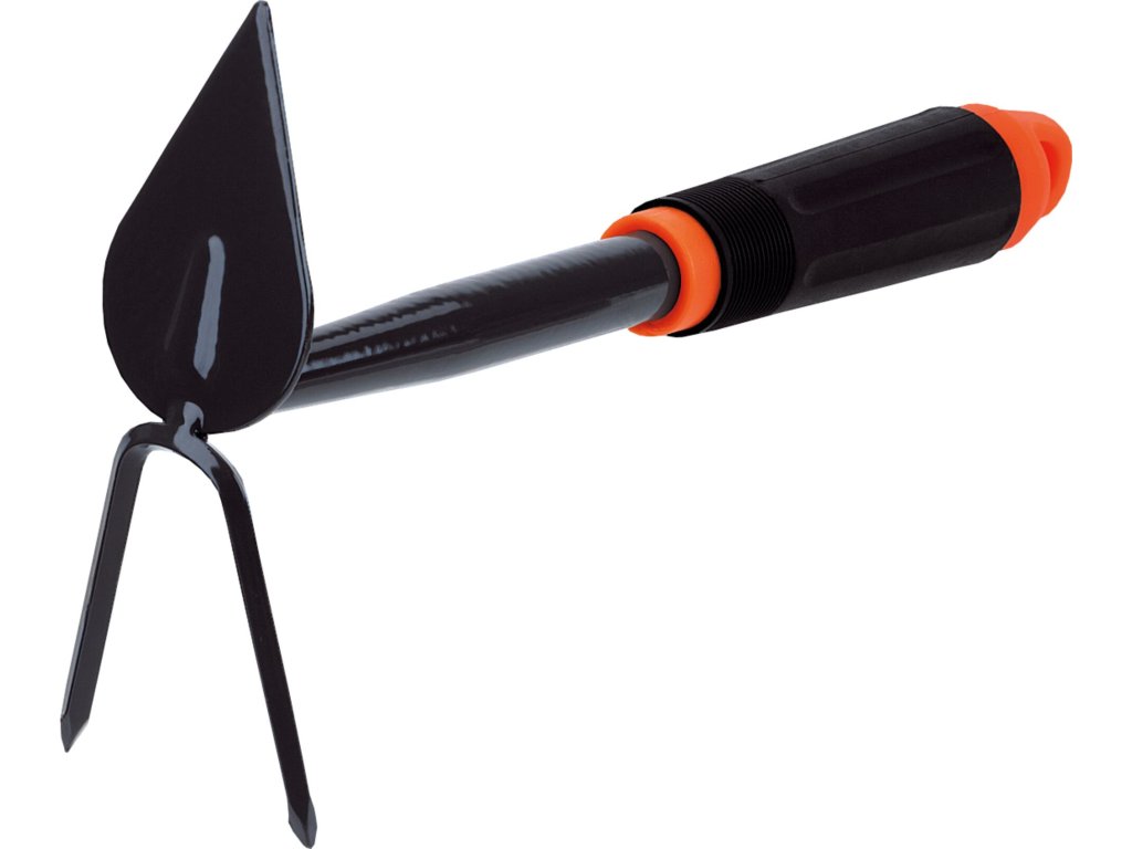 Srdcová dvojhrotá motyka s kovovou pracovní částí. Masivní plastová rukojeť se závitem, který umožňuje našroubování dlouhé kovové násady. Násadu je možné dokoupit a využít pro celou řadu ručního nářadí Stocker (772018).