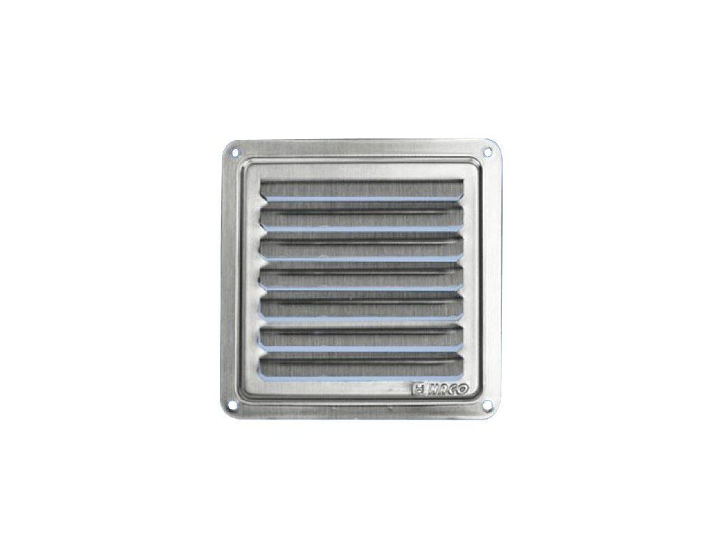 Větrací mřížka krytka s pevnými skloněnými horizontálními žaluziemi je vhodná pro průmyslové, obchodní i domácí větrání, vytápění a klimatizaci. Mřížka je stabilní vůbči nepříznivým vlivům a teplotě, jednoduše se instaluje, snadno se čistí. Rozměr: 100 x 100 mm. Materiál: nerez.Doplňkové parametry
