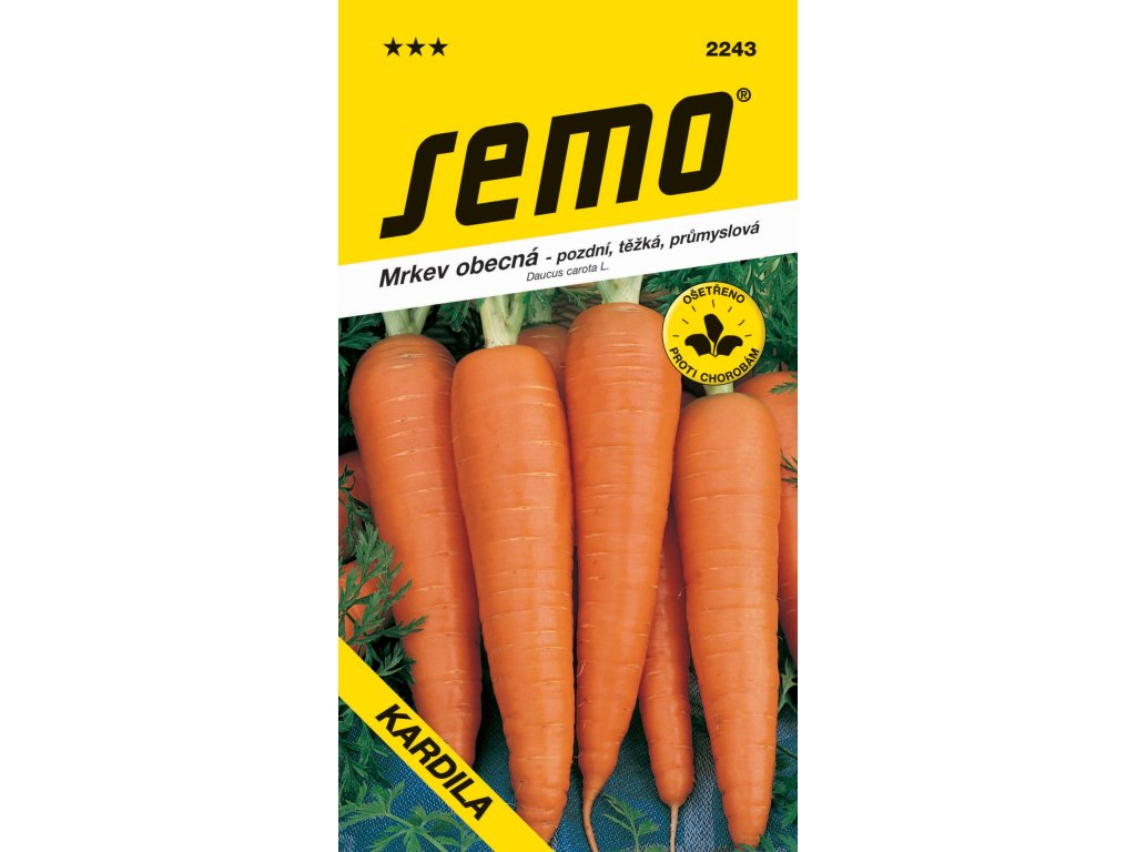 KARDILA (kód 2243) - pozdní, velmi výnosná mrkev typu Flakee vhodná k zimnímu skladování. Kořen je válcovitý, v dolní části se zužuje. Barva kořene je na celém řezu intenzivně oranžovočervená. Odrůda je vhodná i ke zmrazování a sušení.