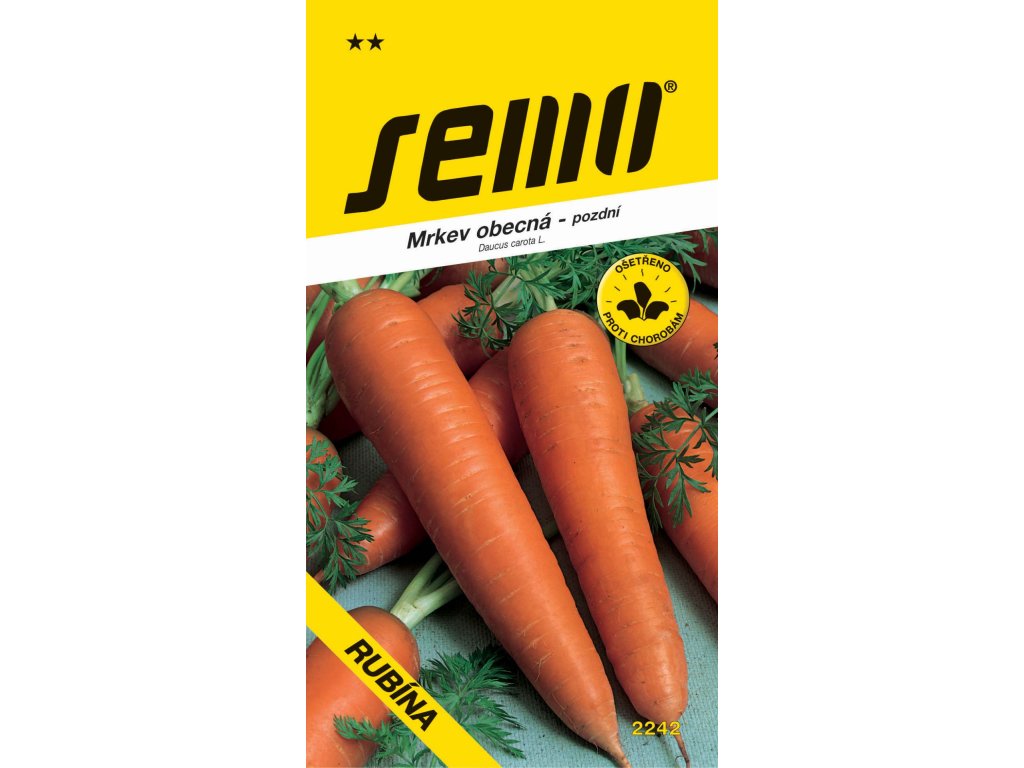 RUBÍNA (kód 2242) – pozdní mrkev velmi vhodná k zimnímu skladování z raných výsevů v březnu až dubnu. Kořen je válcovitý, ve spodní části se zužující, částečně tupě zakončený, 16 – 17 cm dlouhý. Barva kořene je intenzivně oranžovo-červená. Odrůda je odolná vůči vybíhání do květu, praskání a větvení kořenů. Ze 100 m2 lze sklidit 500 – 600 kg kořenů. Má velmi dobrou skladovatelnost. Vegetační doba je 160 – 180 dní.