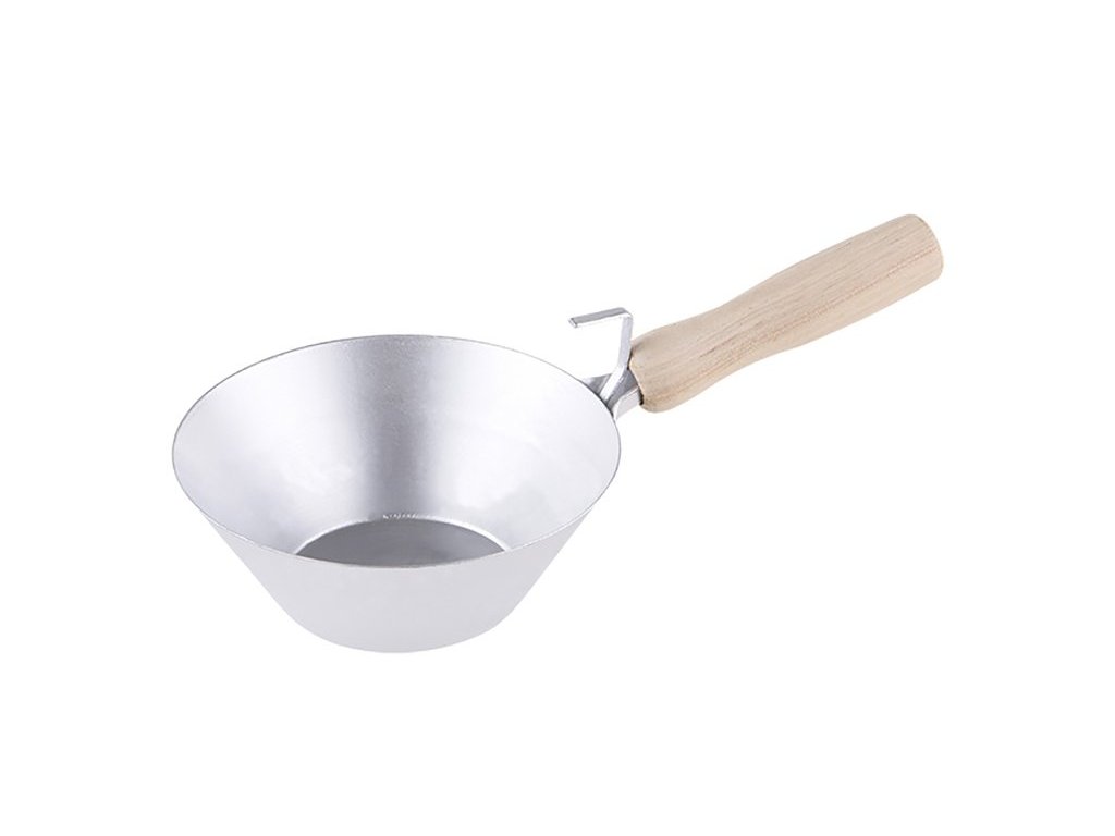 Zednická naběračka 160 mm s dřevěnou ručkou a s háčkem na pověšení. Je zednické nářadí používané pro přemisťování stavebních hmot: malta, beton atd.Doplňkové parametry