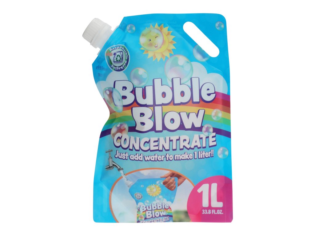 Náplň na výrobu bublin, koncentrát, 35 ml, v sáčku. objemt 35 ml k výrobě 1 l rozměry: 17 x 26 cm v sáčku Mýdlová směs pomůže vyrobit nespočetně bublin a vykouzlit úsměv na tváři. Stačí jen dolít vodu a z koncentrátu získáte 1 l náplně.Doplňkové parametry