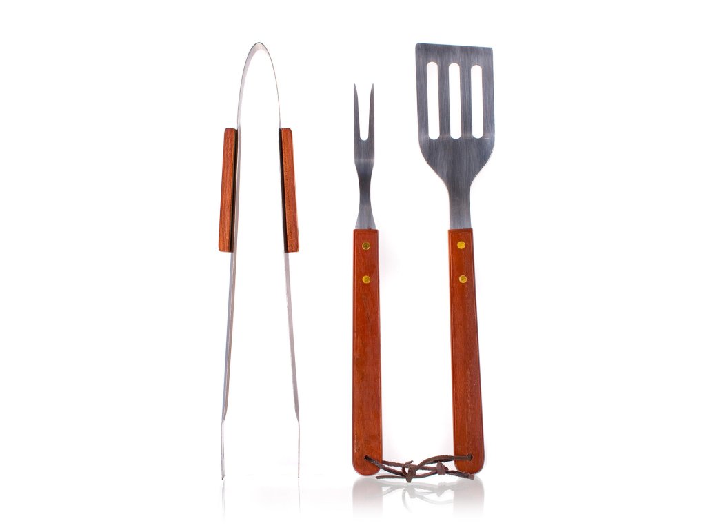 nářadí grilovací BBQ nerez, dřev.ruk. sada 3díl.