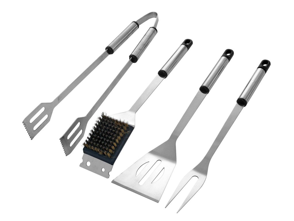 Nářadí grilovací BBQ, nerez, sada 4díl. sada obsahuje 4 díly: - kartáč - kleště - obracečka - vidlička materiál: nerez ocel Sada obsahuje základní nářadí potřebné při grilování. Nářadí je vybaveno očky pro zavěšení.Doplňkové parametry