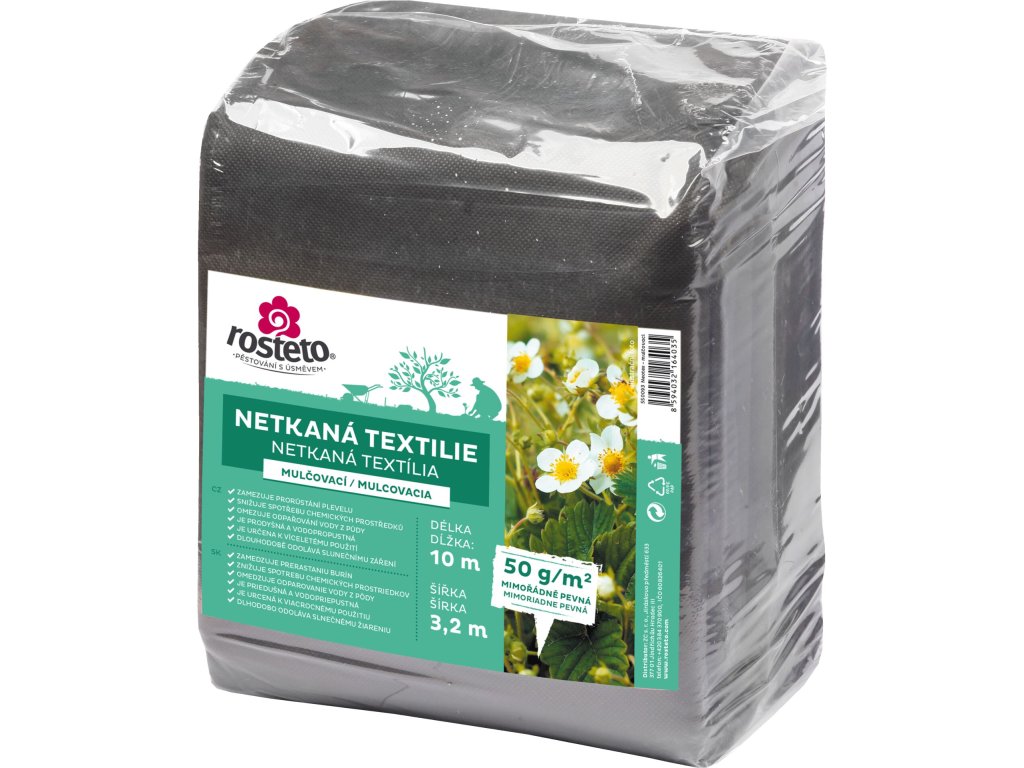 Popis a použití:Rozložený na půdu má výborné mulčovací vlastnosti, to znamená, že zabraňuje prorůstání plevele, půda se v jarním období dříve prohřívá a textilie dokáže naakumulovanou teplotu v půdě zadržet na delší dobu, což umožňuje rannější výsev. Díky otevřené struktuře textilie propouští vzduch i vodu a výrazně omezuje nežádoucí výpar z půdy, a to znamená výraznou úsporu vody při zalévání a příznivý vliv na rozvoj kořenového systému.
