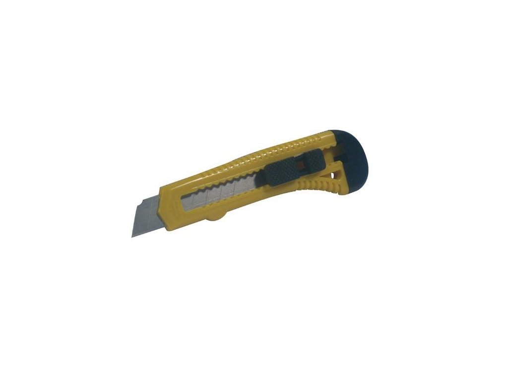 Nůž odlamovací 18 mm. délka: 18 mm Odlamovací nůž je praktický pomocník v dílně i domácnosti, ideální pro bezpečné řezání a krájení. Hrot nože se dá snadno zasunout a zajistit pojistkou proti nechtěnému vysunutí.Doplňkové parametry