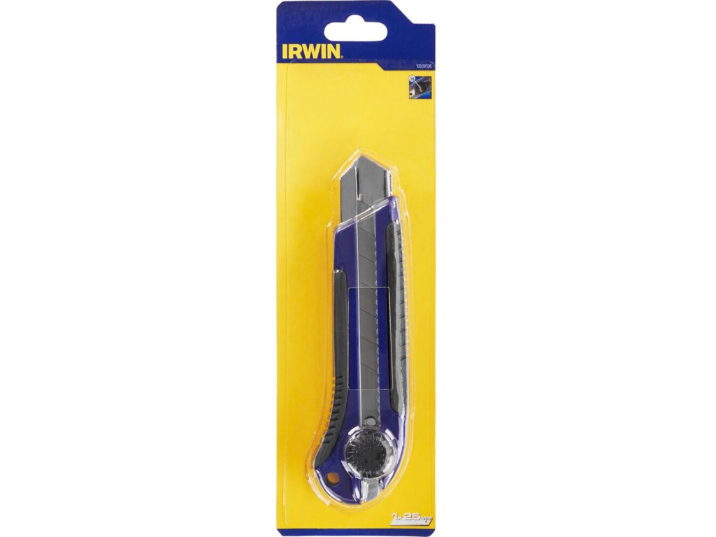 Odlamovací nůž 25 mm s utahovacím šroubem IRWIN Šířka čepele: 25 mm Tento nůž je určen pro celou řadu méně až středně náročných použití. Rukojeť zajišťuje bezpečné a pohodlné držení a větší pohodlí při používání. Díky zúžené špičce lze dosáhnout vyšší přesnosti a lepší viditelnosti řezaného povrchu.Doplňkové parametry