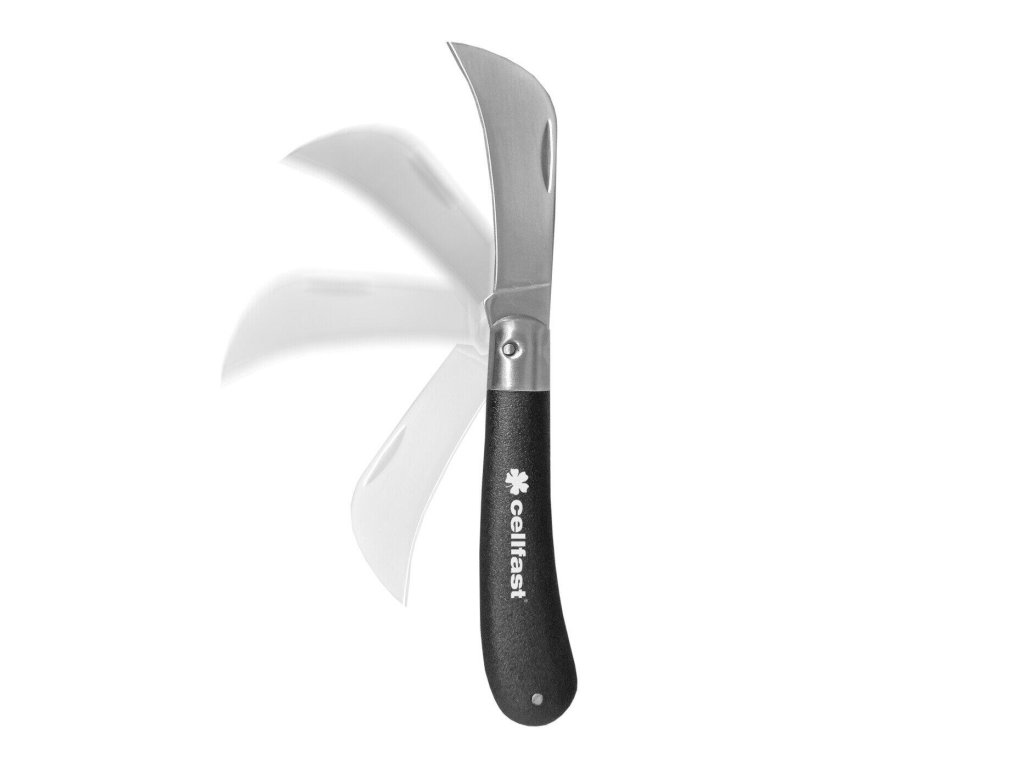 Zahradní roubovací nůž CELLFAST. - určený pro ovocnářské práce - umožňuje prořezávání mladých výhonků, stříhání malých větviček nebo roubování rostlin - tvar čepele zajišťuje přesnost při práci - čepel z odolné nerezové oceli 3CR13 - sklopná čepel skrytá v rukojeti zajišťuje bezpečnost a snadné skladování nože - ergonomická rukojeť poskytuje stabilní uchopení a usnadňuje manévrování Očkovací zahradní nůž - je určený pro precizní zahrádkářskou práci, zejména při roubování ovocných stromků nebo k prořezávání mladých výhonků. Sklopná čepel zajistí bezpečné skladování nože.Doplňkové parametry