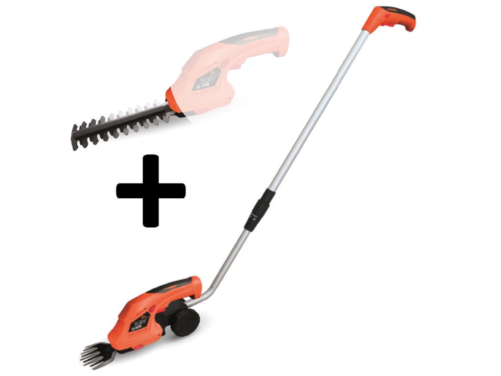 Nůžky aku na trávu, keře, 7,2 V, Li-Ion, teleskopická tyč s kolečky ASIST. 3 v 1 SDS výměna lišt výkonná aku 7,2 V Li-Ion 1500 mAh laserem broušené lišty na trávu 90 mm a na keře 170 mm prodloužená doba práce na 1 nabítí až 45 min přídavná teleskopická ALU tyč s kolečky pro snažší práci záruka ASIST 3 roky pracovní napětí: 7,2 V Li-Ion kapacita baterie: 1500 mAh otáčky naprázdno: 1100 / min lišta na trávu - záběr 90 mm lišta na dřeviny - záběr 170 mm doba nabíjení baterie: 3 - 5h doba použití s nabitou baterkou: cca 45 min nastavitelná přídavná tyč (600 - 1000 mm) s kolečkyDoplňkové parametry