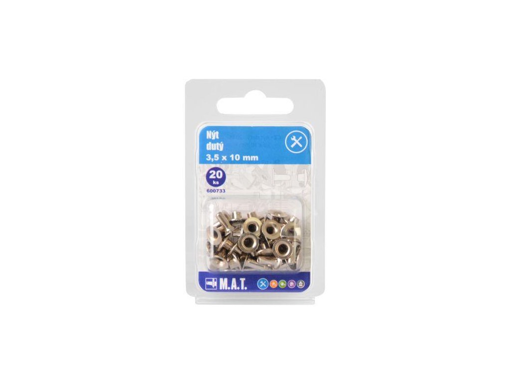 rozměry (pr. x D): 3,5 x 10 mm 20 ks Nýt dutý 3,5 x 10 mm nabízí mnohostranné a variabilní využití pro náročná spojení u různých konstrukčních jednotek.Doplňkové parametry