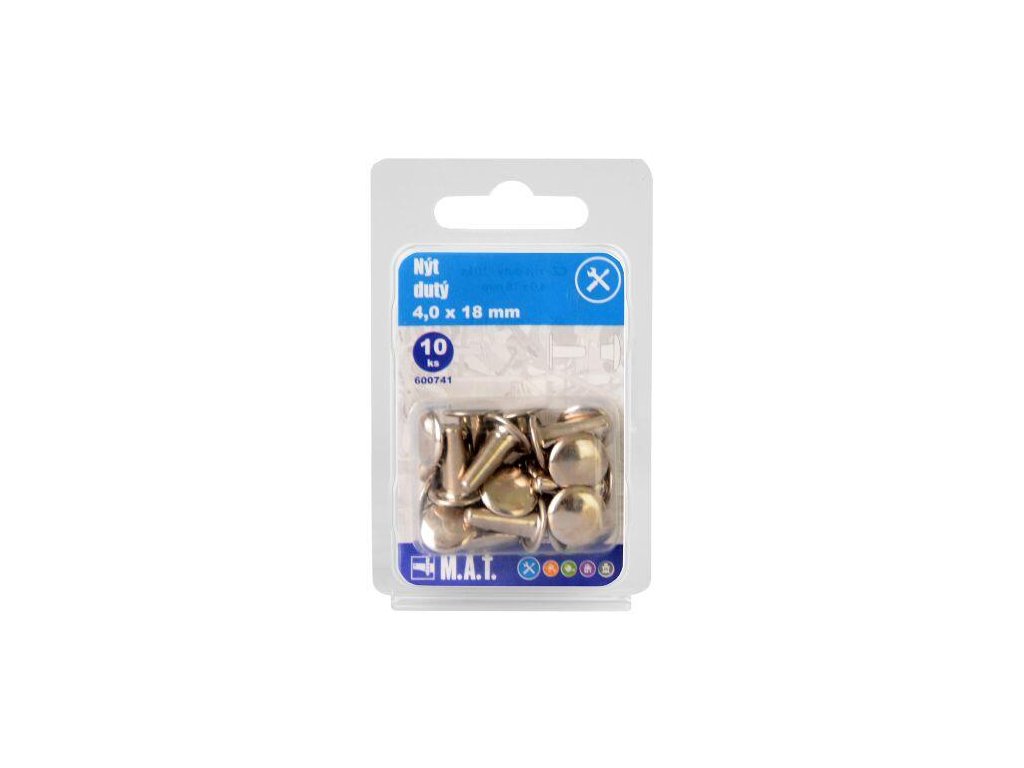rozměry (pr. x D): 4,0 x 18 mm 10 ks Nýt dutý 4,0 x 18 mm nabízí mnohostranné a variabilní využití pro náročná spojení u různých konstrukčních jednotek.Doplňkové parametry