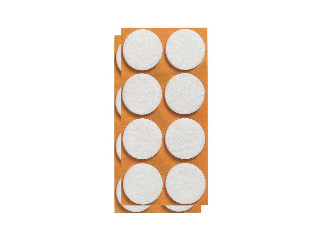 Ochranné podložky pod nábytek samolepicí. - blistr se samolepicími podložkami pod nábytek - jednoduchá montáž - podložky rovněž chrání před hlukem při posouvání židlí apod. Už žádné rýhy ani otlaky na podlaze! Praktické filcové podložky ochrání vaši podlahu před poničením od nábytku. Před nalepením očistěte a osušte nohu nábytku, tak aby podložka dobře držela a neodlepovala se. rozměry: pr. 28 mm barva: bílá balení: 12 ksDoplňkové parametry