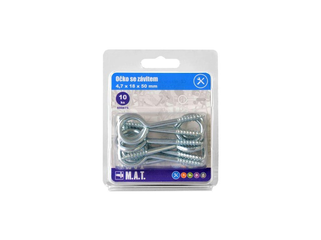 rozměry (D x pr. očka x pr.): 50 x 18 x 4,7 mm materiál: Zn 10 ks Zavřené očko se závitem 50 x 18 x 4,7 mm pro uchycení předmětů a břemen do různých materiálů.Doplňkové parametry